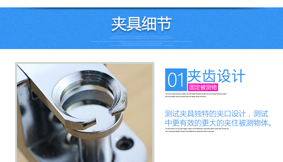 產(chǎn)品型號(hào):JQ-015 品牌:劍 喬 用途:紐扣夾具適用范圍:紐扣、玩具等材料的拉力,破壞力測(cè)試。
